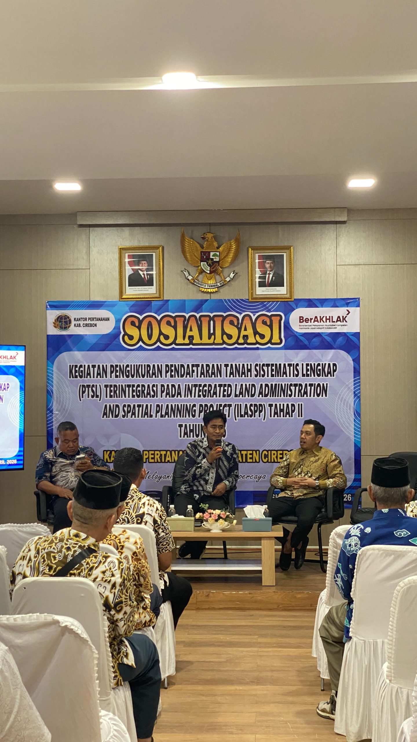 Pada hari Kamis (23 April 2026) Kantor Pertanahan Kabupaten Cirebon melaksanakan Sosialisasi Pengukuran Pendaftaran Tanah Sistematis Lengkap (PTSL) Terintegrasi pada Integrated Land Administration and Spatial Planning Project (ILASPP) Tahap Il tahun 2026, bertempat di Aula Kantor Pertanahan Kabupaten Cirebon.