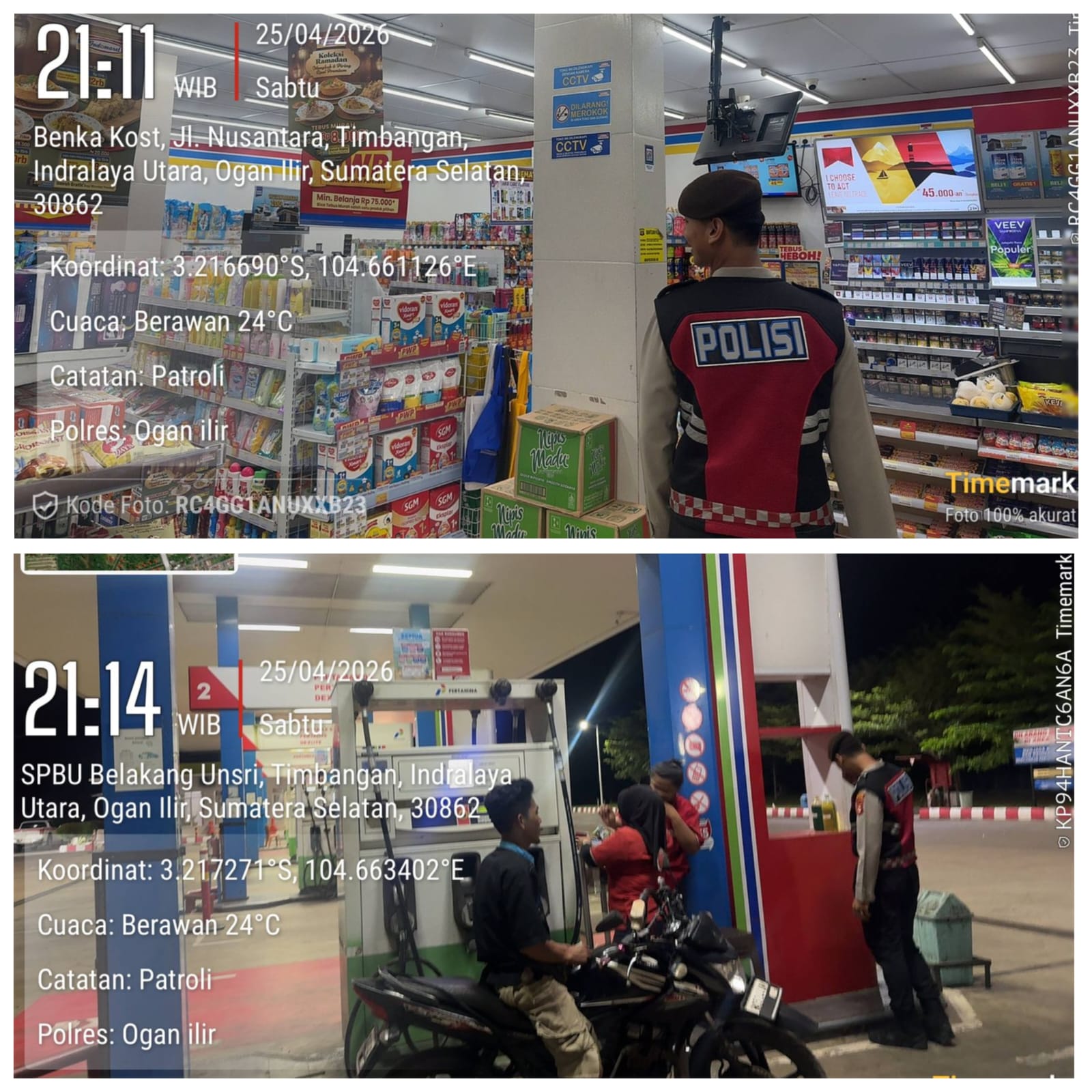 Guna menjaga stabilitas keamanan dan ketertiban masyarakat (kamtibmas), Satuan Samapta Polres Ogan Ilir mengintensifkan kegiatan Patroli Perintis Presisi dengan menyasar sejumlah titik rawan, seperti pusat perbelanjaan, kawasan kost mahasiswa, serta SPBU, Sabtu (25/4/2026) malam.