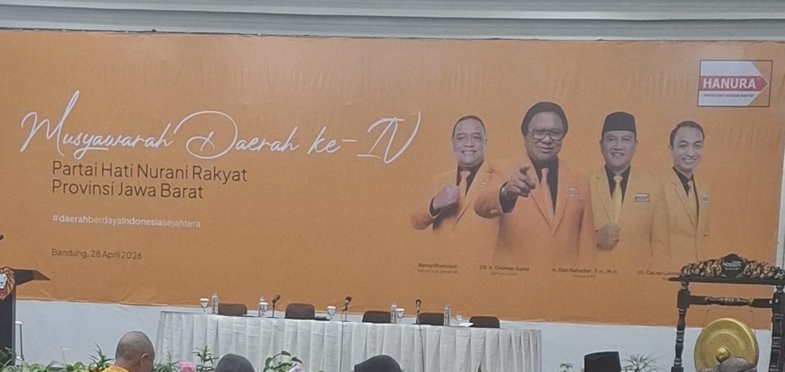 Partai Hati Nurani Rakyat (Partai Hati Nurani Rakyat) menggelar Musyawarah Daerah (Musda) ke-IV tingkat Provinsi Jawa Barat pada Selasa, 28 April 2026, di Bandung. Kegiatan ini menjadi momentum penting dalam memperkuat konsolidasi internal partai serta merumuskan arah strategi politik ke depan.